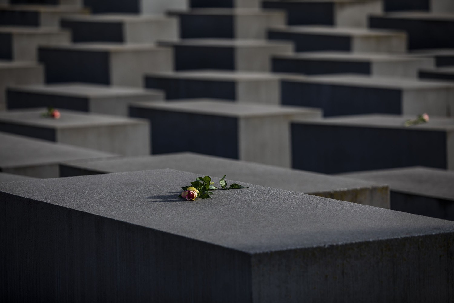 20. Roses are placed on the Holocaust Memorial on International Holocaust Remembrance Day, January 27, 2021, in Berlin, Germany. January 27 marked the 76th anniversary of the liberation of the Auschwitz concentration camp by Soviet forces in 1945. At Auschwitz, Germany's Nazis were responsible for the deaths of more than 1 million Jews and other victims during World War II.