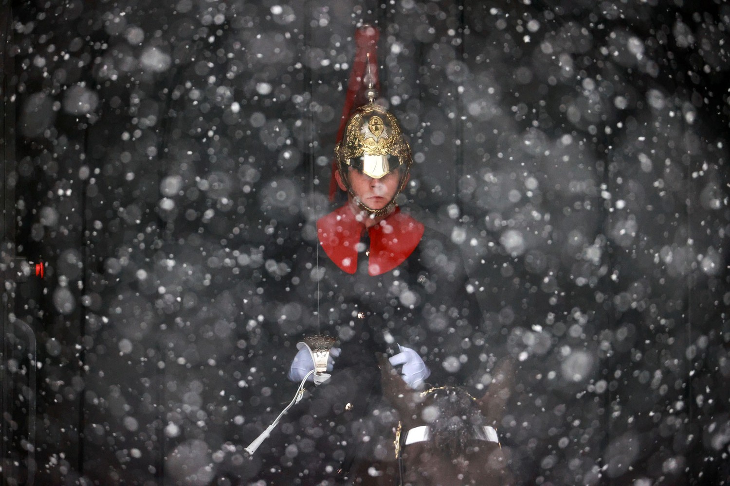 30. A soldier rides a horse at Horse Guards Parade during snowfall in London, England, on January 24, 2021.