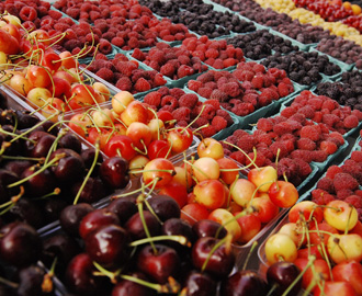 Cherries and berries for sale at the Westmoreland Berry Farm stand at the Arlington Farmers' Market in Arlington, Virginia (Jonathan Ernst/Reuters)