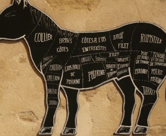 Everyone who seriously studies French or Italian food on scholarly (gluttonous) research trips eats horsemeat. Most every village in France, particularly the southwest and northern border regions with Belgium, and in Italy, particularly the northeast around Verona and Venice, will have a butcher shop specializing in horsemeat, marked with disconcerting gilded horseheads over the shop windows revealing trays of bright lean red meat. Anyone who visits Eastern Europe, especially the Stans, is likely to be used into a restaurant whose specialty is horse cuisine. It's a rite of passage, like watching a pig slaughter and eating fresh blood pudding right afterward.