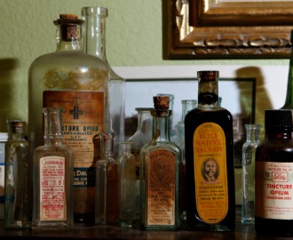 A collection of antique medicine bottles, come containing ingredients such as opium and cannabis that were later outlawed (Reed Saxon/AP)