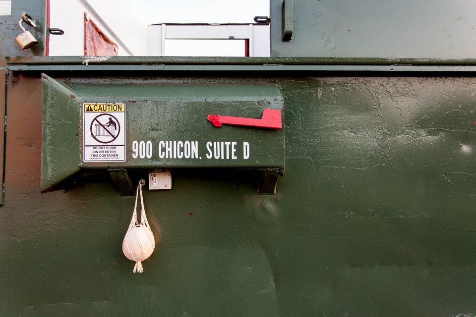 With the weather station now strapped to the top, Wilson tracks his personal climate in real time. Pulling up data on his computer from inside his centrally cooled office as we spoke, he announced that the dumpster was currently 104 degrees. During the spring, when Austin was a little cooler, he was able to pass some daytime hours in the dumpster. With the arrival of summer, that became unbearable. “But some interesting things happened because of that,” he explained. He spent a lot more time out in the community, just walking around. “I almost feel like East Austin is my home and backyard,“ he said. He is constantly thinking about what sorts of things a person really needs in a house, and what can be more communal.