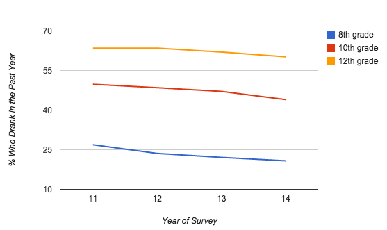 Percent of Teens Who Said They Drank in the Past Year