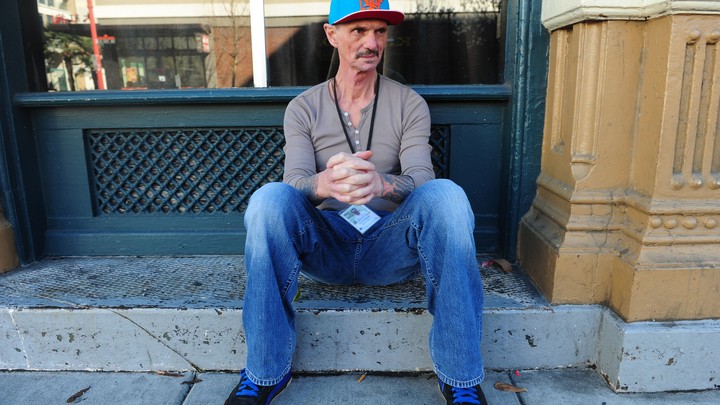 Former heroin addict David Fitzgerald outside the rehabilitation clinic where he works in OregonSteve Dykes / AP