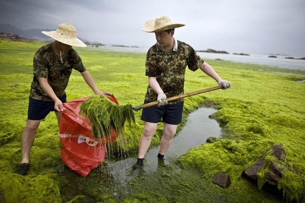China also dumped untreated sewage and industrial waste into the sea, causing thick carpets of algae to sprout across the water. One such bloom choked the site of an Olympic sailing regatta with furry, green plantlife just six weeks before the Games were set to begin.