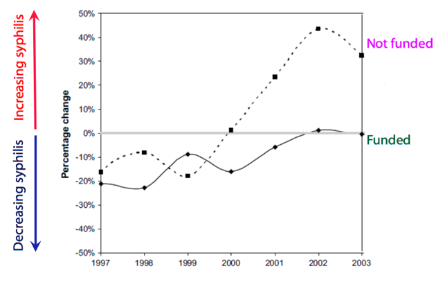 Change in Syphilis Rates and Funding for Syphilis Prevention