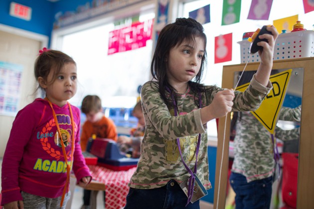 A wiry 4-year-old named Izzy Green dashes across the room, her long black hair trailing behind her, and runs between two of the seated children. She bursts into the center of the circle, plops herself onto the floor, and curls into a ball, moaning and clutching a little blanket. Small heads turn as Izzy rolls across the carpet and leaps to her feet. She retreats across the room, scoops up a book, and hurls it past a teacher.