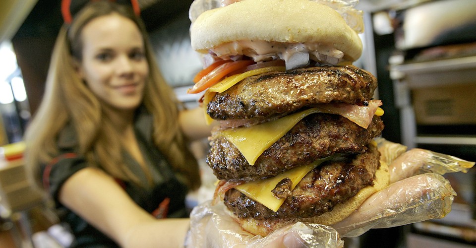 There is a “hospital-themed restaurant” in Las Vegas called the Heart Attack Grill. Inside, customers are invited to tempt death with food. The waitresses dress as provocative nurses and deliver “prescriptions,” which are enormous hamburgers. Depending on the number of beef patties between the buns, they’re known as single-, double-, and triple-bypass burgers. The system goes all the way up to octuple bypass.