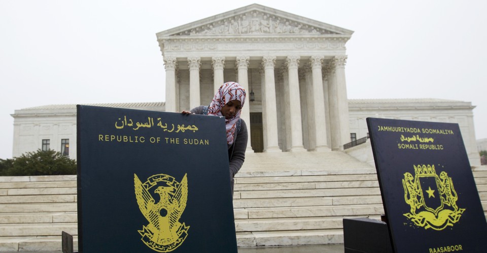 Poster sized enlargements of passports are on display during an anti-Muslim ban rally at the Supreme Court on April 25, 2018.Jose Luis Magana/ AP