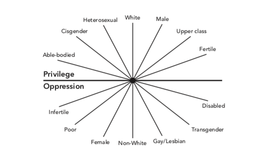 Since “privilege” is defined as the “power to dominate” and to cause “oppression,” these axes are inherently moral dimensions. The people on top are bad, and the people below the line are good. This sort of teaching seems likely to encode the Untruth of Us Versus Them directly into students’ cognitive schemas: Life is a battle between good people and evil people.