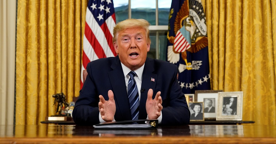 This crisis is not of Trump’s making. What he is responsible for is his failure to respond promptly, and then his perverse and counterproductive choice of how to respond when action could be avoided no longer. Trump, in his speech, pleaded for an end to finger-pointing. It’s a strange thing for this president of all presidents to say. No American president, and precious few American politicians, have ever pointed so many fingers or hurled so much abuse as Donald Trump. What he means, of course, is: Don’t hold me to account for the things I did.
