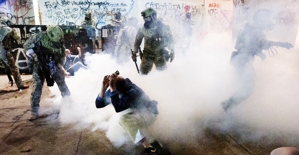 That these tactics are not “totalitarian” doesn’t make them legal, acceptable, or normal. I repeat: Citizens’ rights are being violated in Portland. People have been hauled off the streets into unmarked vehicles. Long-standing precedents about the relationship between states and the federal government have been overturned. Lawsuits have already been filed.