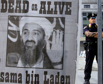 New York police stand near a wanted poster for Osama bin Laden, in this file photo from September 18, 2001 / Reuters
