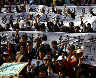 Residents of Wukan rally against land grabs and other forms of corruption / Reuters
