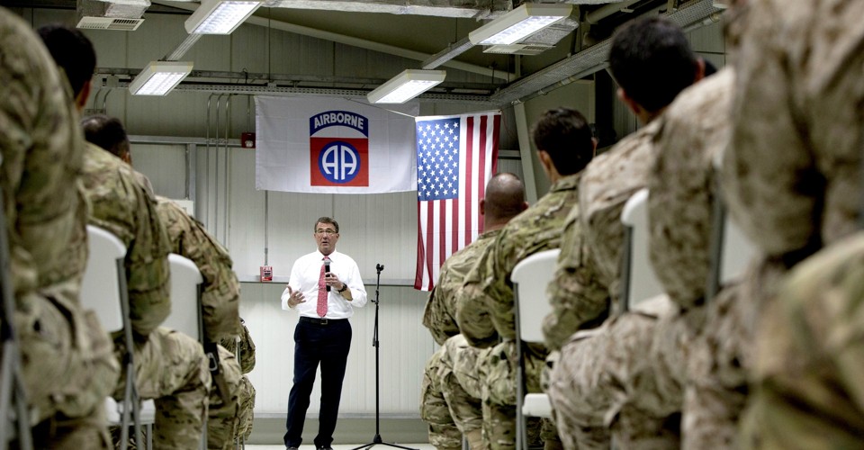 “Americans are flying combat missions, thousands of combat missions, over Syria and Iraqi territory. There are Americans involved in training and advising Iraqi security forces around the country. We do not have combat formations there the way we had once upon a time in Iraq, or the way we have had in years past in Afghanistan,” Carter said.