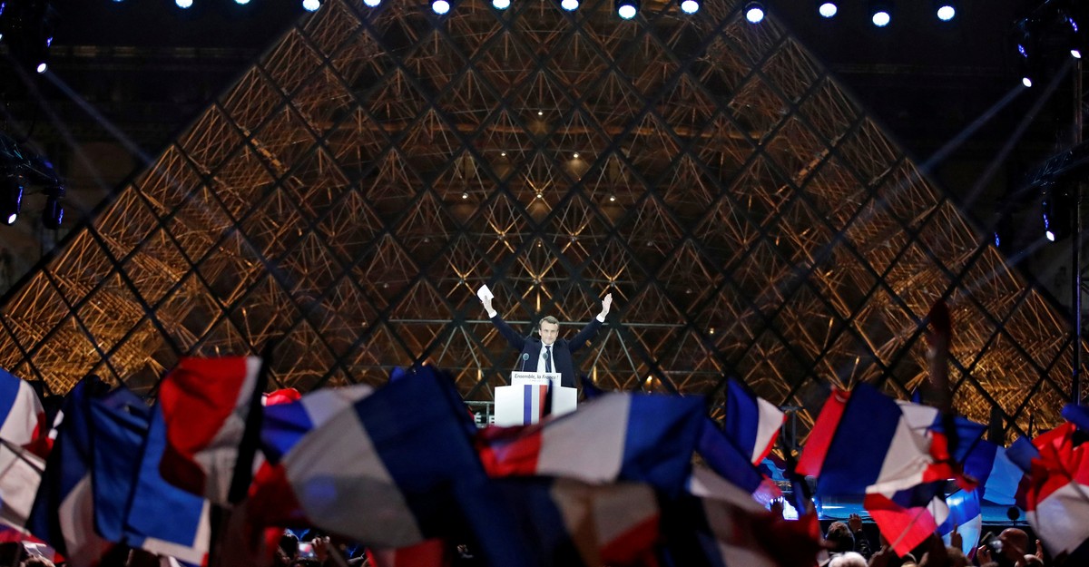 PARIS — Shortly after 10:30 on Sunday night, as the elegiac strings of Beethoven’s Ninth Symphony filled the darkened courtyard of the Louvre, Emmanuel Macron, France's president-elect, began a long, solitary march to the stage where he was awaited by a crowd of many thousands and a nation almost entirely uncertain of what to expect from its fresh-faced new leader. It is often said that the president of the French Fifth Republic is an elected monarch, and Macron indeed looked very much the young king, a bit stiff with awe and entirely alone but for the glare of a spotlight and a clutch of television cameras, there to capture his rehearsed solemnity and the nervous movements of his eyes.