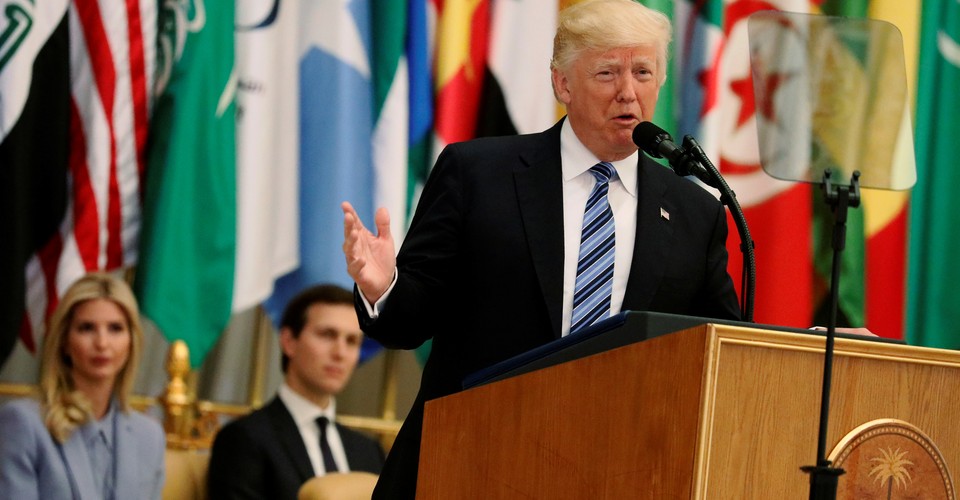 Trump did condemn “extremism.” But speaking in the country he has accused of complicity in 9/11, he did not once pointedly suggest that any Middle East regime except Iran’s might bear any responsibility for that extremism. Rather than suggesting, as both Obama and George W. Bush did, that the authoritarianism and corruption of Arab governments might have helped spawn groups like al-Qaeda and ISIS, Trump reversed the causality. The Middle East’s “untapped potential” he declared, “is held at bay by bloodshed and terror.” And in so doing, he endorsed the agenda that Saudi Arabia and other Sunni Arab dictatorships have been urging for years: Help us confront Iran and kill “terrorists” (which includes anyone who opposes our hold on power) and all will be well. In his speech in Riyadh, Trump didn’t even use the phrase that he endlessly excoriated Clinton and Obama for avoiding: “radical Islamic terrorism.” He talked about “extremism.” But never used it as an adjective to modify the noun “Islam.”