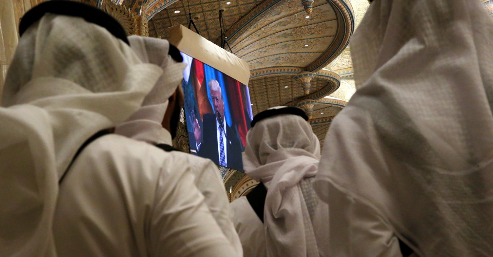 The speech was nonetheless divisive. But the intolerance it preached was the intolerance sanctioned by Saudi Arabia and the other Gulf states: anti-Shiism, with frankly sectarian overtones. The official line in the Gulf is that Iran is a Shiite caliphate—a Shiite version of ISIS, only with 35 years’ practice, an active nuclear program, and a seat at the United Nations. When Trump invoked Iran, he recovered his old thunder for a few moments and echoed these claims. He accused Iran of giving terrorists