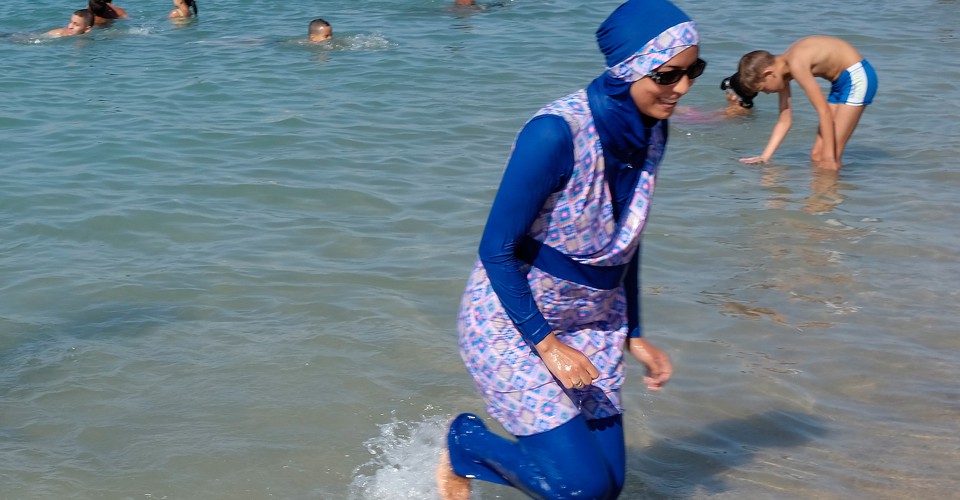 I didn’t associate Massachusetts beaches with burqinis—or with Muslims, for that matter. But my family and I were on vacation, and there was a woman in the water wearing the full-body swimsuit. Next to me on the beach, two friends were talking somewhat loudly. The woman said, “That’s what they were trying to do in France”—ban burqinis. Her friend responded nonchalantly, as if he couldn’t imagine anyone else thinking otherwise: “Yeah, that’s so culturally insensitive.” He quickly connected this to President Trump, saying that we were becoming a “meaner” country, presumably like France.