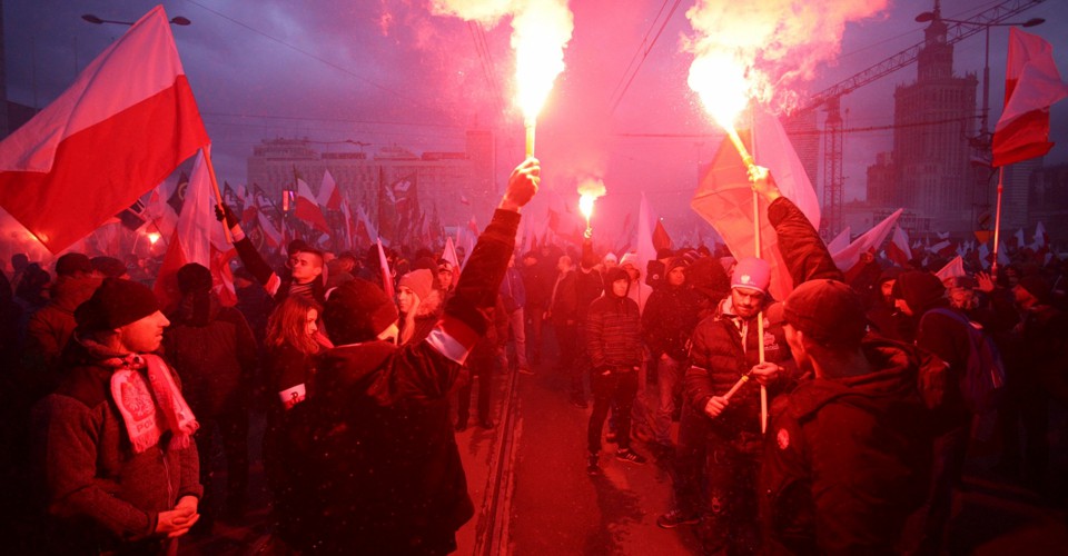 In Poland, last weekend’s independence day celebrations mutated into perhaps the ugliest international congregation of the extreme right seen in Europe in recent times. The grotesque procession of militant nationalists, white supremacists, and radical Islamophobes included Poland’s National-Radical Camp, the National Movement, and the All Polish Youth, as well as the deputy chairperson of Jobbik, Hungary’s most xenophobic party. These groups and others who attended trace their ideas back to anti-Semitic, sometimes-fascist movements popular before World War II. Like their forebears, they won’t rule out the use of violence.