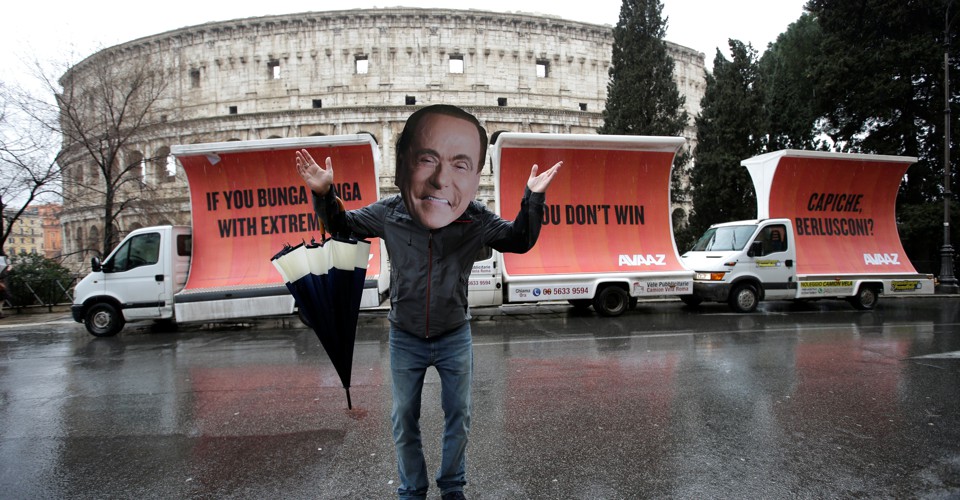 But the party's supporters don't come across as extremists. They're people who are fed up with the mainstream parties and feel left out. Last Friday, at the last campaign rally of the Five-Star Movement, held in Piazza del Popolo here, I was struck by the range of the party's supporters. Maria Moccia, an English teacher in a public school outside Rome, told me she used to vote Communist then center-left, but had grown “tired of the same faces and the same parties and the broken promises.” Concetto Cansonella, a civil servant, told me he liked the Five-Star Movement because he thought they had “a free hand,” and were “citizens like us.” Across the piazza I met Andrea Liri, a retired FIAT worker from the Lazio region outside Rome who told me he used to support the far-right Movimento Sociale Italiano, but stopped voting entirely after that party transformed itself into the National Alliance and allied with Berlusconi. Now Liri was a Five-Star voter. Nearby, a group held up a banner that read “Don't Worry, Mom, I'm with the Honest.” The party has campaigned on a platform of “legality, honesty, and a fight against corruption,” as Alessandro di Battista, one of the party's more energized leaders, said on stage at the rally. (As part of its growing pains, it has also kicked out some MPs for ethical violations.)