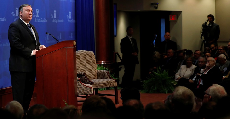 Pompeo’s list of demands on Iran was long. If it wanted diplomatic and commercial relationships with the U.S., he said, it would have to end its ballistic-missile program as well as its support for terrorist groups like Hezbollah and its regional malfeasance in places like Iran and Syria. The contours of the list were familiar; many of the demands echoed what the Iran deal’s critics said had been left out of the nuclear deal, rendering it in their view fatally flawed. All together, the number of Pompeo’s asks clocked in at 12. “If you look at it, these are 12 basic requirements; the length of the list is simply the scope of the maligning behavior of Iran,” he said. “We didn’t create the list, they did.”