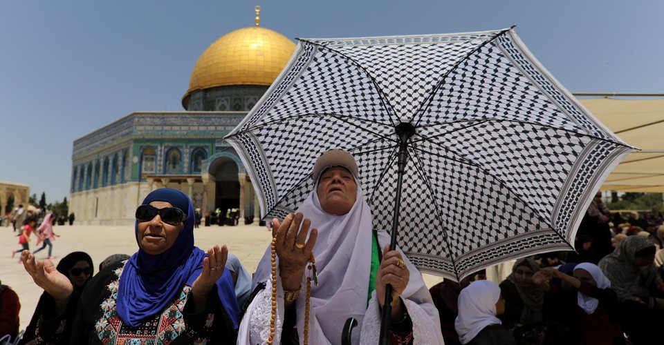 JERUSALEM—It’s holiday season here in the Holy Land. Parts of the Old City are decked out for Ramadan in paper lanterns of yellow, red, and green. On the first Friday of the holiday, the often quiet streets of the Muslim Quarter were packed. Tiny boys screamed the price of sweets to hungry passersby, many of whom are fasting from sunrise to sunset every day this month. Palestinians from all over Israel and the Palestinian territories pile into buses and cars and travel here for jummah, the weekly communal prayers, at Al-Aqsa Mosque, the holy site where Muslims believe Muhammad prayed. “We can enter Al-Aqsa just on Friday, just in this holy month in Ramadan. In other months, we can’t enter here,” said Fatima Bader, a 19-year-old Muslim woman who was headed into the mosque with her mom and a couple of other women. “So it’s really emotional.”