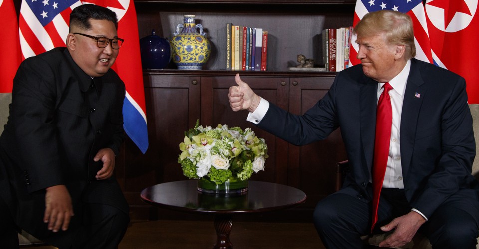 It was bound to be a spectacle. This would’ve been true even apart from the outsized figures—Donald Trump and Kim Jong Un—at the center of the Singapore summit; the fact of an American president meeting a North Korean leader was itself historic. This not long after an entirely different kind of spectacle, in the form of the fierce war of words between the two last summer, with Trump’s “fire and fury” directed at “Little Rocket Man” and Kim’s threat of an “enveloping strike on Guam” to punish a man he called a “dotard.” There was then the theatrical announcement of the summit, followed by its theatrical cancellation, followed by the comparatively subdued announcement it was back on.