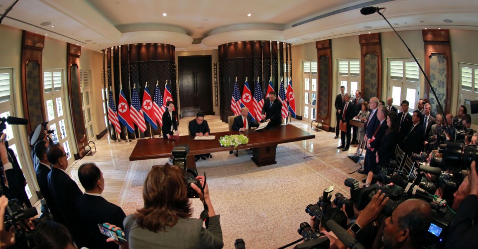 If these recommendations seemed prudent and urgent at the time, it’s hard to argue only half a year later that the Singapore summit and the flurry of direct, lower-level talks preceding it are meaningless or even reckless. Within months of Duckworth warning darkly that the U.S. military had “seen the writing on the wall,” Donald Trump and Kim Jong Un were signing a statement in which they pledged to jointly “build a lasting and stable peace regime on the Korean peninsula.” That’s astonishing.