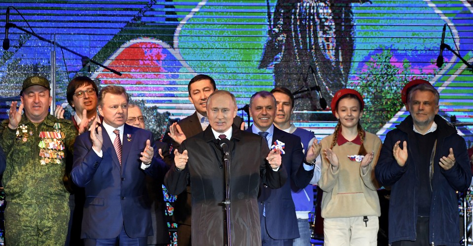 Putin has also buoyed his reputation in Crimea with well-timed honed PR stunts, such as flying here in 2015 to switch the lights back on following a blackout caused by a Ukrainian blockade. It was he who cut the ribbon on the Kerch bridge. And in March, he led the celebrations for the fifth anniversary of the annexation by inaugurating two new power stations.
