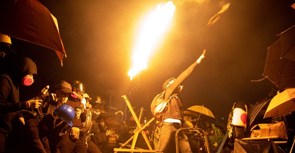 To gnaw away at that strength, the government has taken ever tougher steps to thwart large gatherings. Officials routinely deny permits for marches, and last month they imposed a ban on wearing face masks, intended to scare off demonstrators who sought anonymity. (This latest decision was overruled by a Hong Kong judge this week.) Police have used more violent means on the streets—rubber bullets, water cannons, mass detentions, and live fire—as justice officials press riot charges.