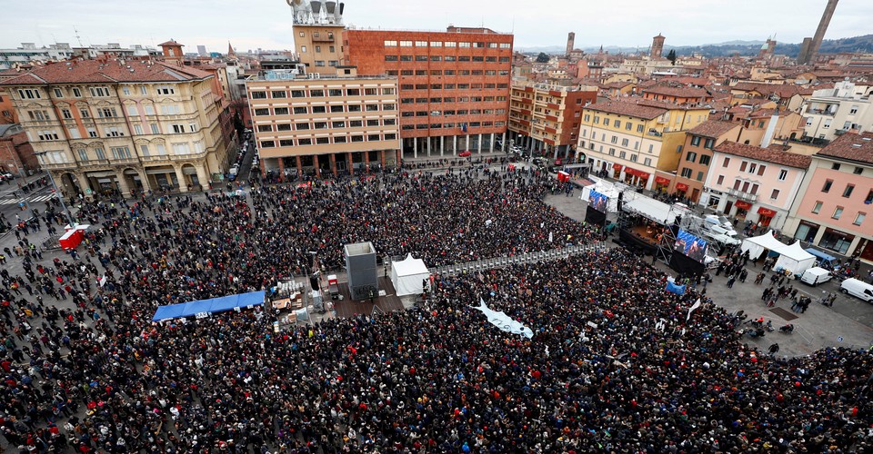 BOLOGNA, Italy—About a week ago, 30,000 people showed up to a piazza in this elegant city, known for its porticoes and tortellini, for a free concert. The event had been organized by the Sardines, a nascent civic-minded uprising that has been holding peaceful demonstrations to contest the nativist rhetoric of Matteo Salvini, Italy’s opposition leader and the head of its right-wing League party, a man who dominates airwaves and social-media channels with his sovereignist, anti-immigrant message. The atmosphere at the concert was convivial. Many waved cardboard cutouts of fish and sang along to renditions of “Bella Ciao,” the old anti-fascist anthem.