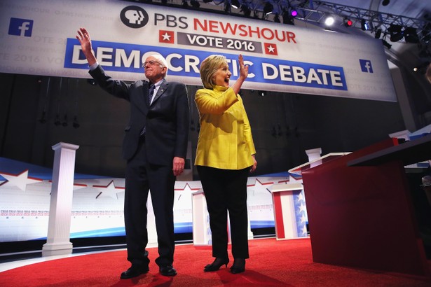 Deprived of major differences, the candidates retreated to familiar mantras. For Sanders, that’s the belief that the entire economy is rigged and that the ultimate solution is political revolution. As usual, he boasted that, unlike Clinton, he has no super PAC and relies on small donors, but he did not take the chance to reprise his very effective attack about her speeches to Goldman Sachs. Clinton missed a softball pitch from Judy Woodruff, who asked how wealthy donors to her campaign were different from wealthy donors to Republicans—didn’t they all want a quid pro quo? Rather than take the easy answer—that her policies would boost the middle class and hurt those donors—she tried instead to brag about her small-dollar donors, a metric on which she’ll never beat Sanders.