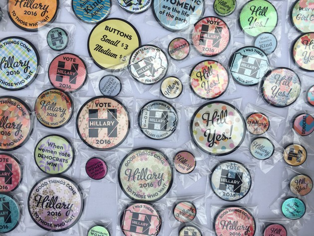 From the proceedings today in Philly: the many varieties of Hillary buttons.
