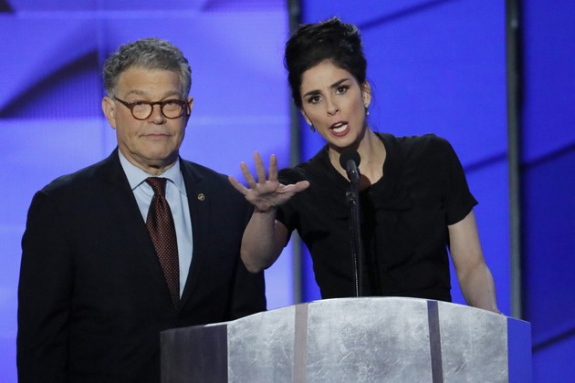 Two SNL alum, Sarah Silverman and Al Franken, took the stage—the former a Sanders supporter, the latter a Clinton supporter. But no matter, they sought to show unity tonight—though not without poking some fun.
