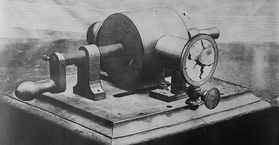 Edison’s early phonograph nevertheless contained every essential feature of the new instruments which he and other inventors are about to introduce. It was founded upon the discovery that if a delicate diaphragm or sounding-board is provided with a sharp point of steel, its vibrations under the sound of the human voice will cause the sharp point or stylus to make a series of impressions or indentations upon a sheet of wax or other material passed beneath it. Such indentations, though microscopic, are sufficiently defined to cause similar vibrations in the diaphragm, if the stylus is again passed over the furrow of indentations, and this reproduction is loud enough to be heard.