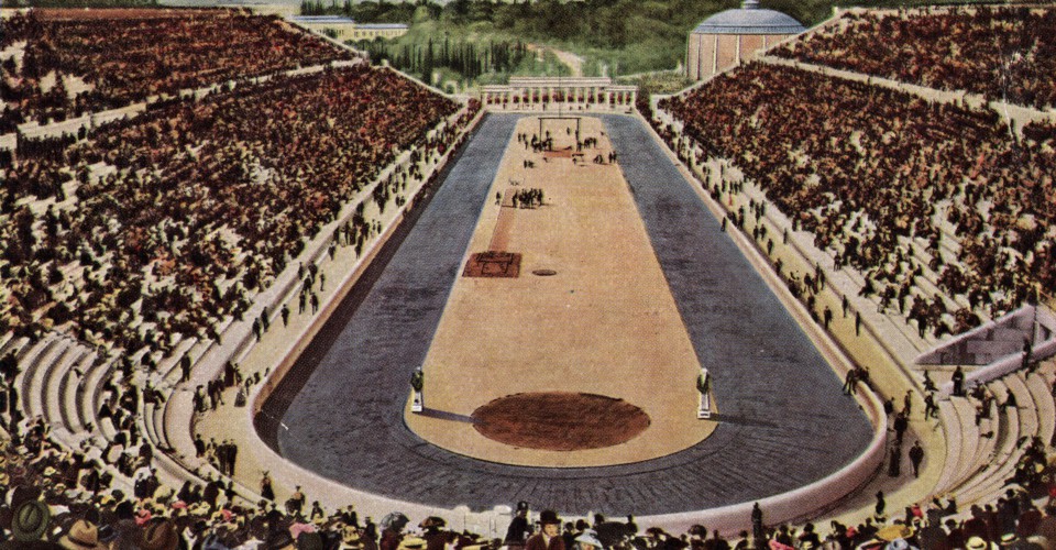 The next day the games opened in a superb stadium, gift of a wealthy and patriotic Greek, built of Pentelic marble and seating seventy-five thousand spectators. Around and above it, on three sides, rose bare hills, which provided free space for the local deadheads—a sort of Athenian Coogan's Bluff. In building the stadium the Greeks had unearthed four statues which had marked the turns in the ancient Athenian games held on the same site, and these were now installed at the four turns of the new cinder track for the first Olympic revival. The track, by the way, was well intended and well built, but it was soft, which accounted in part for the slow times recorded. After the opening ceremonies before the King and Queen, the taking of the Olympic oath, and the lighting of the Olympic torch, we proceeded to business.