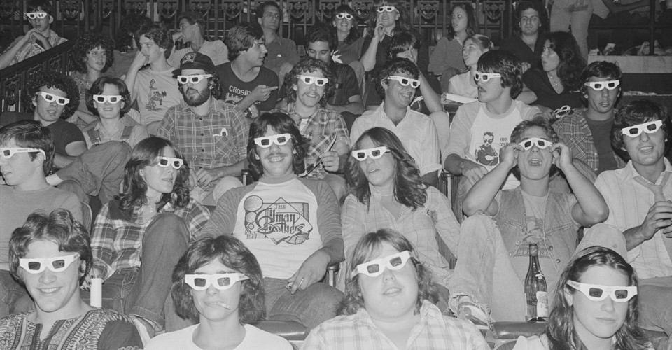 Like most other people whose tastes began to form before television became the dominant entertainment medium, I have a simple idea of what it means to go to the movies. You buy your ticket and take a seat in a large dark room with hundreds of strangers. You slide down in your seat and make yourself comfortable. On the screen in front of you, the movie image appears—enormous and overwhelming. If the movie is a good one, you allow yourself to be absorbed in its fantasy, and its dreams become part of your memories.