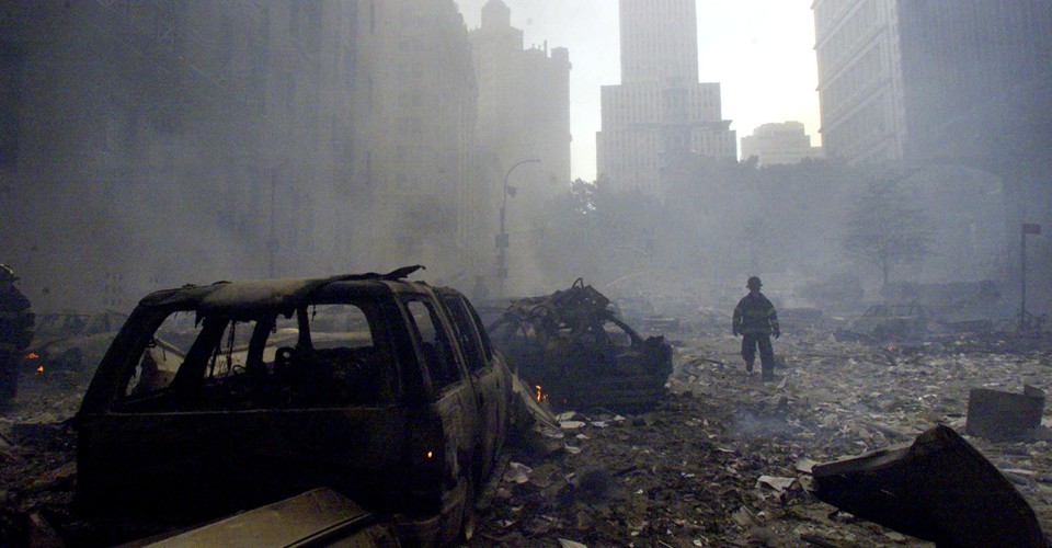 For thirty years the Twin Towers had stood above the streets as all tall buildings do, as a bomb of sorts, a repository for the prodigious energy originally required to raise so much weight so high. Now, in a single morning, in twin ten-second pulses, the towers released that energy back into New York. Massive steel beams flew through the neighborhood like gargantuan spears, penetrating subway lines and underground passages to depths of thirty feet, crushing them, rupturing water mains and gas lines, and stabbing high into the sides of nearby office towers, where they lodged. The phone system, the fiber-optic network, and the electric power grid were knocked out. Ambulances, cars, and fire trucks were smashed flat by falling debris, and some were hammered five floors down from the street into the insane turmoil erupting inside the World Trade Center's immense "bathtub"—a ten-acre foundation hole, seventy feet deep, that suffered unimaginable violence as it absorbed the brunt of each tower's collapse.