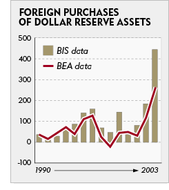 This was different from the situation in the 1980s and 1990s, when foreigners earned dollars from their exports and used those dollars to buy American companies, real estate, and stock. In those days foreigners invested heavily in America because the payoff was so much greater than what they could get in Frankfurt or Tokyo. In an influential paper published in 2004 the economists Nouriel Roubini, of New York University, and Brad Setser, of Oxford University, demonstrated that this was no longer the case. Increasingly it was not individuals or corporations but foreign governments—in particular, state-controlled banks in Asia—that were sending money to America. And America was using it to finance the federal budget deficit.