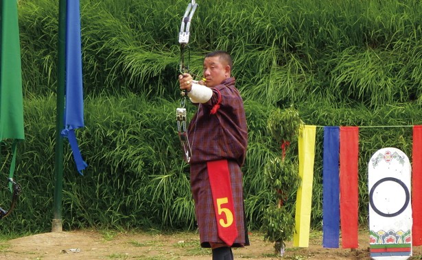 Still, sports based on weaponry do have their perils. At Changlimithang, I’m careful not to cross the range until dancing triggers a break in the action. But mishaps do occur: during the tournament, the winner of a shoot-out to name Bhutan’s best archer (prize: an Indian-made Maruti Suzuki A-Star hatchback) revealed that he’d been shot in the past. So had the runner-up. And so had the Bhutanese Parliament member Ugyen Tenzin, who had to be airlifted to Calcutta for neurosurgery when an arrow lodged in his brain in 2010.