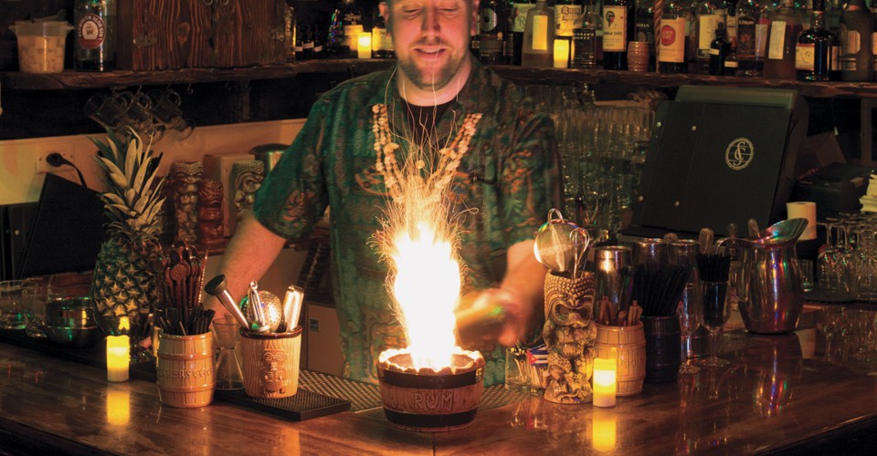In the past, Cate went further still, spraying high-proof liquor through the flame with a mister to create a formidable fireball. But he recently cut back on that practice, after several out-of-town, off-duty fire inspectors stopped in for a drink and, witnessing the process, asked him about the “accelerant.” As Cate puts it, “That’s a red flag when you own a bar.”