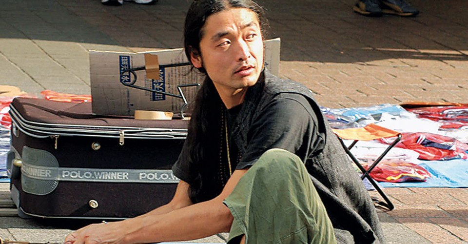 Hiroki Iwabuchi is slouched over a bowl of noodles in his pool-table-size apartment, peering at the camera that’s filming him. He slurps absently for awhile, and then a friend joins him—he’s come to cut Iwabuchi’s hair. It’s hard for anyone to look natural during a haircut, but Iwabuchi barely seems alive. Squatting over a pile of newspapers, shirtless under a trash-bag smock, he doesn’t look tired so much as defeated, like a dog that has given up on being adopted.