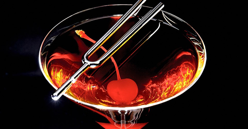 Unless, that is, you happen to have a tuning fork. There’s a theory making the rounds—I first heard it from David Wolowidnyk, who runs the bar at West, a well-regarded Vancouver restaurant—that vibrations of the right frequency will cause the molecules in a drink to rearrange themselves in curious ways, thereby altering or enhancing the flavor.