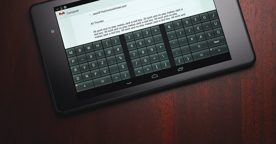 The resulting design maximizes alternation between thumbs—as one presses a key, the other can move toward the next target. Vowels are clustered on the right-hand side, so as to minimize thumb travel distance, and the left hand, which the researchers determined to be quicker at finding the next key, handles most of the consonants. Each side has its own centrally located spacebar to save even more time.