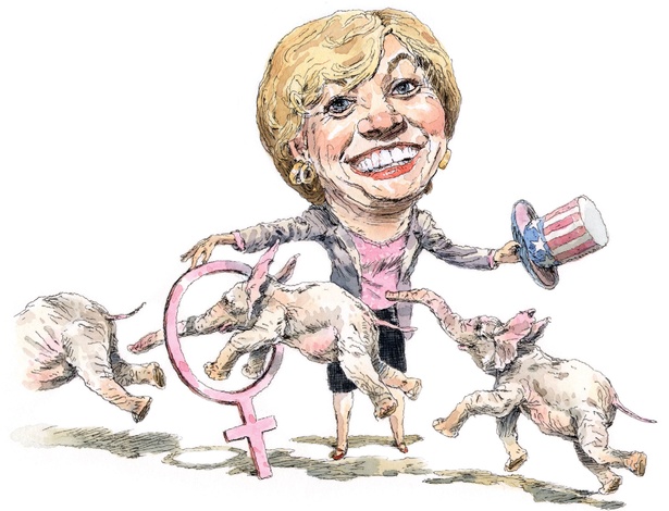 The one cloud that seems to dim her optimistic outlook is the possibility of another White House bid by Hillary Clinton, whom Toretti calls “very formidable.” Asked what a Clinton candidacy would do to efforts to get women to vote Republican, Toretti chooses her words carefully: “That’s a very tough scenario to look at.”