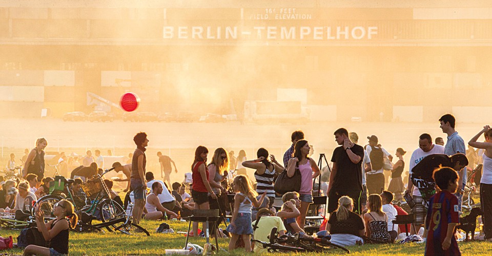 An astounding exception to the rule is “Hitler’s Airport,” Tempelhofer Freiheit. Though it opened in 1923, Hitler expanded it in high totalitarian style. He ordered Hermann Göring to construct a capacious new terminal, which remains one of Europe’s largest buildings and is a rare surviving landmark of Nazi architecture. During the war, Tempelhof’s airfield was home to a Gestapo prison and Berlin’s only concentration camp. The camp’s inmates were forced to build combat aircraft. Later the airport was redeemed, for some, by serving as the site of the Berlin airlift. In 2008, facing declining traffic, and competition from Tegel and Berlin-Schönefeld airports, Tempelhof was closed and slated for demolition.