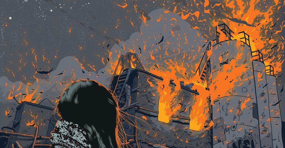 That relationship disintegrates on an autumn trip to Chicago during a sullen weekend that they spend arguing. At the end of the weekend, as they’re leaving the city, they see a factory burning on the riverbank, and stop to watch. Later, on the dark drive back home to Iowa, the woman interrupts the silence between them to say that their trip, though disastrous, was worth it if only for the spontaneous, exhilarating minutes they spent watching the burning factory: