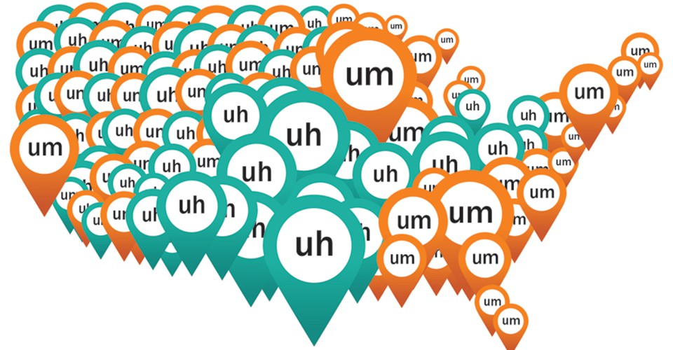 Tweeting is not talking, of course, so Grieve’s results don’t necessarily establish anything about spoken uhs and ums. When uh and um are written, they’re deliberate—and, says Grieve, “they have all sorts of other functions, such as signaling confusion, surprise, sarcasm, or cuteness.” He speculates that um may be somewhat more polite than uh. If so, perhaps the northeastern preference for um is simply an expression of a regional formality. Grieve says that in his other research, he has found the Northeast to be the most linguistically formal area of the U.S.—for example, northeasterners use contractions less frequently than do other Americans. Grieve notes that other regions that favor um—such as the Bay Area and the Southeast—also “tend to be a bit more formal.” But he admits this is a hunch.