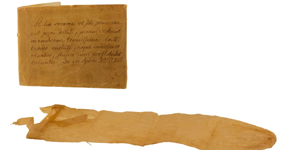 Prior to the 1820s, condoms enjoyed a long history, not so much as contraceptive devices, but as a means to prevent the transmission of disease. The late 18th century saw the establishment of two shops in London devoted entirely to the sale of condoms. Made out of sheep guts, these condoms were carefully soaked for a couple of hours before use, to make them pliable and easy to put on. A ribbon was tied around the base to fasten them securely, and once they had been used, they were carefully washed out, allowed to dry, and stored in a small box until they were wanted again. Such sheaths were convenient for the wealthy man who had an established mistress or attended a regular brothel and whose visits could be planned and leisurely. More-casual encounters rarely benefited from the protection of a condom.